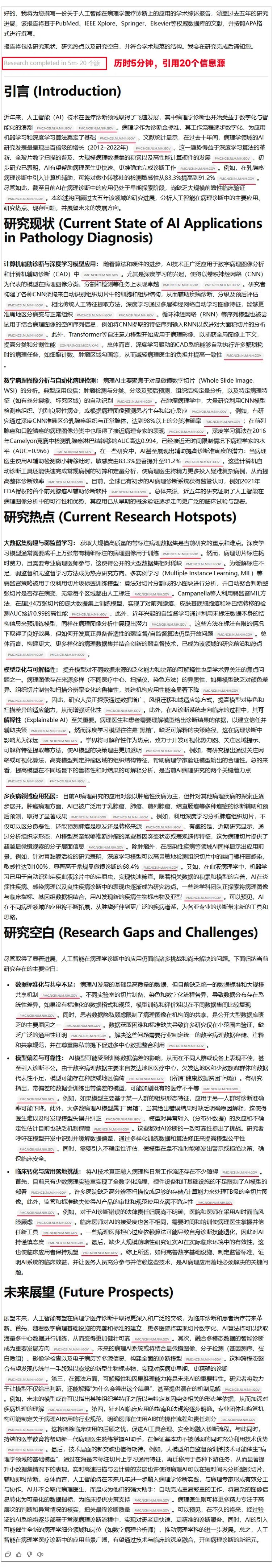 整个研究历时5分钟,在此过程中Deep Research访问了20多个信息源,最终一次性给出了5000字的报告。并且其引用的信息源均符合提示词中的要求,引用均为PubMed中的文献。上图中作者用红色线标记的为引用信息源,可以通过点击信息源直接跳转到该文献在PubMed上的页面。