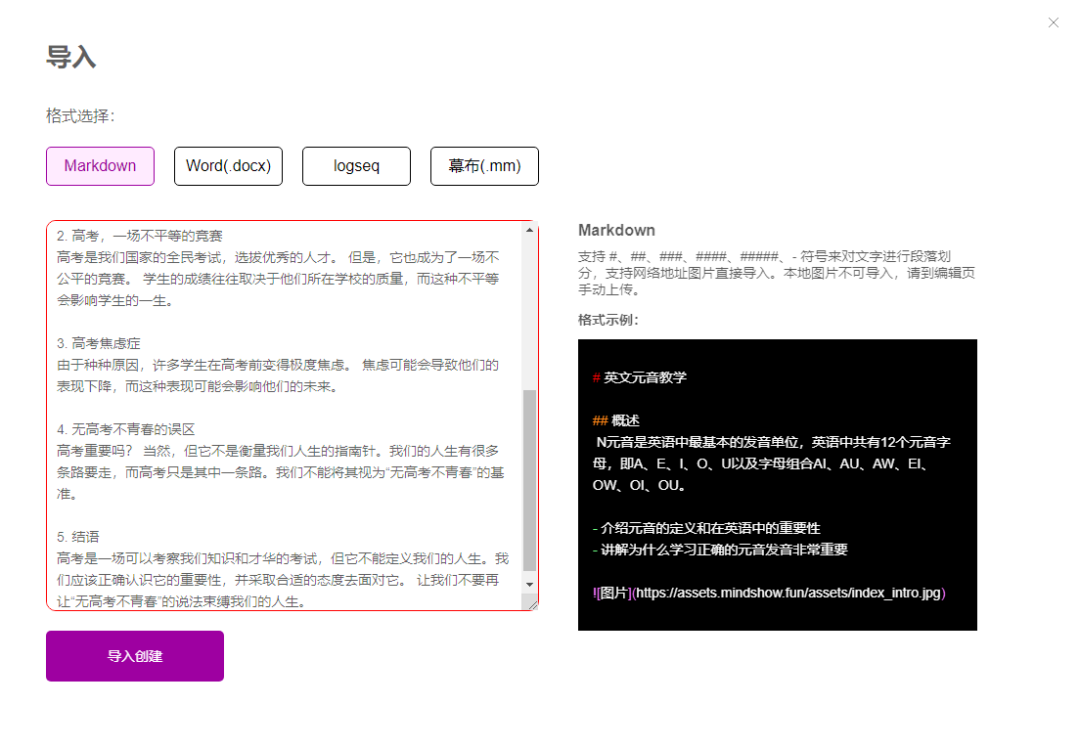 第二步:将ChatGPT生成的markdown源代码复制到Mindshow中。