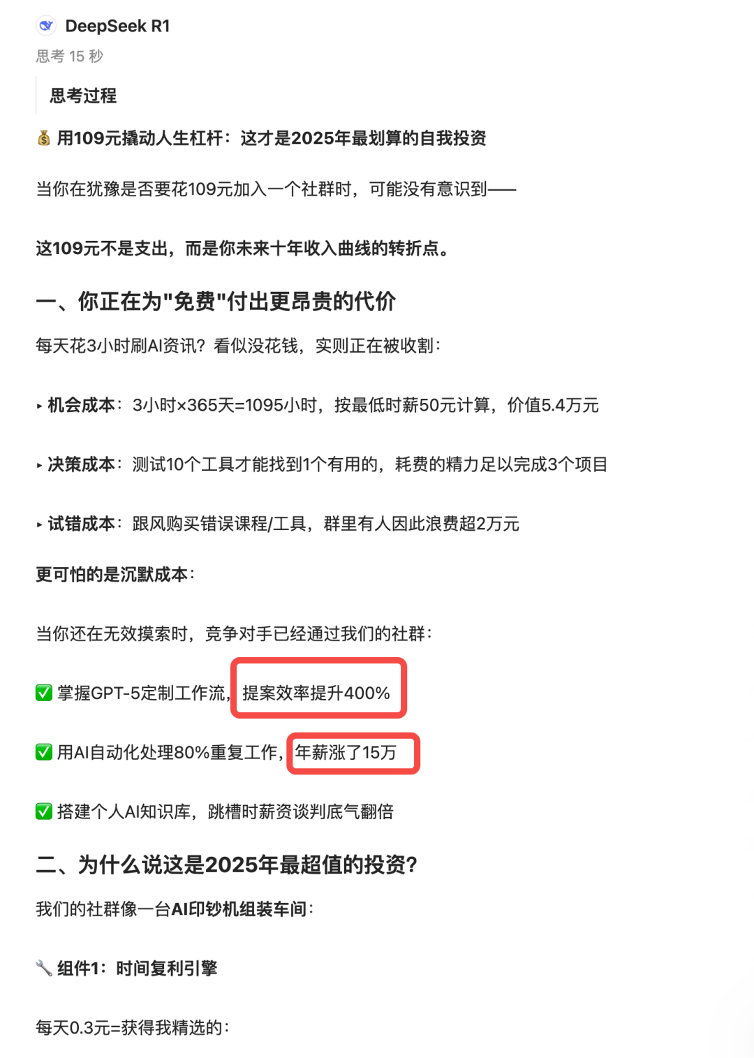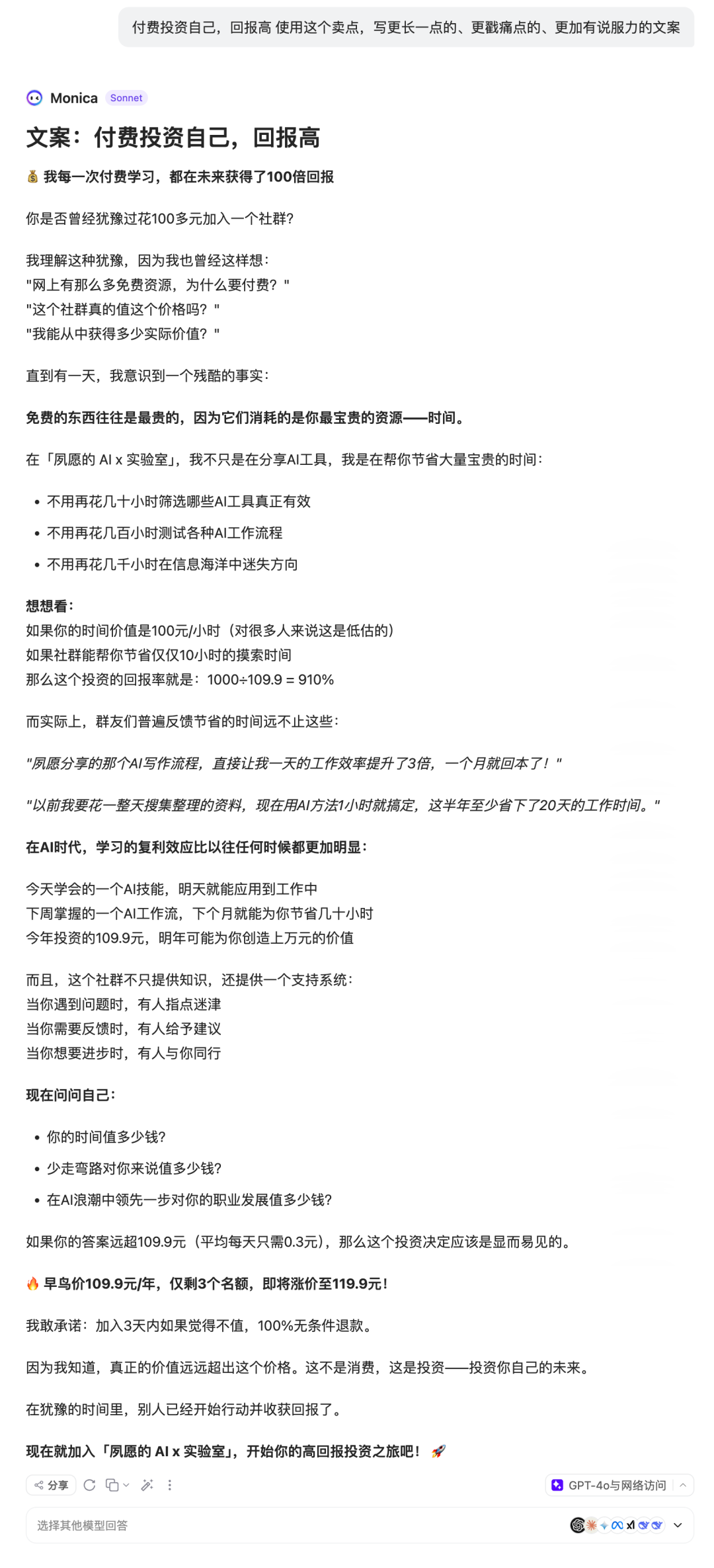 我只需把收集到的信息全都扔给 GPT-4.5,让它自动筛选出对大部分人有价值的信息,再以微信群里大家熟悉的语言风格输出内容,还会自然地融入个人观点,效果非常好。