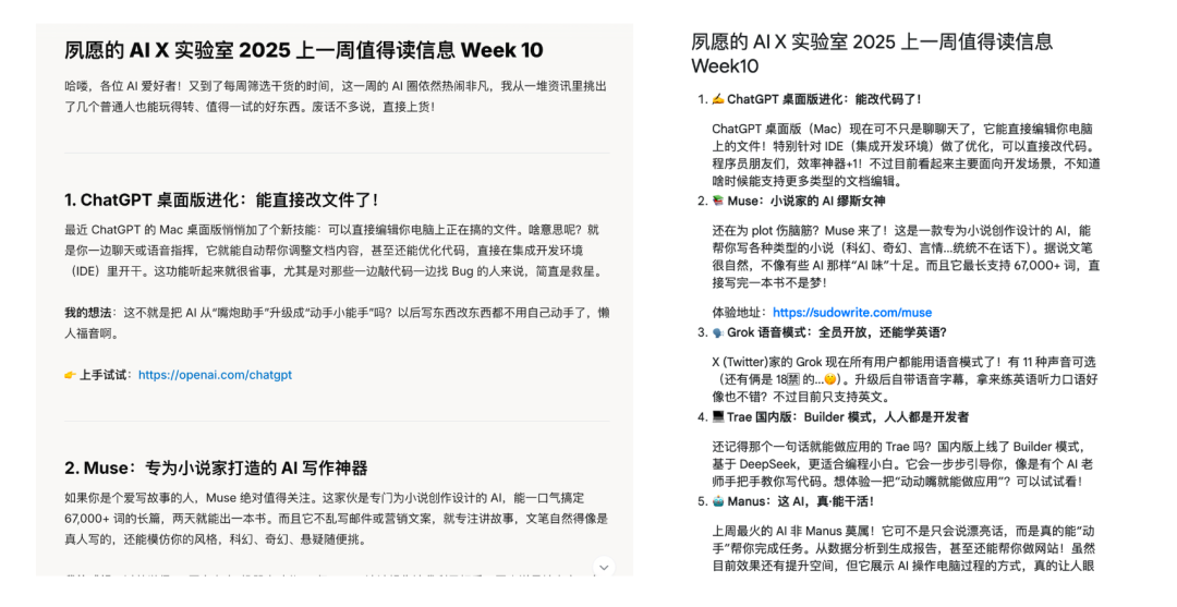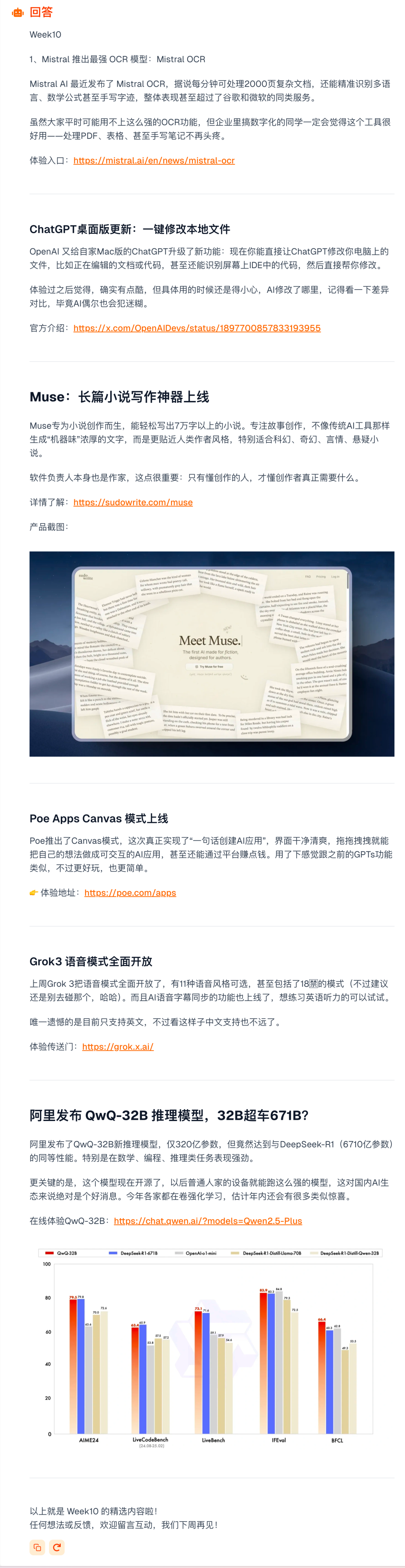 我平时会给社群成员整理每周 AI 领域的热点信息,以前都是我自己人工筛选,现在用 GPT-4.5 完全可以自动化了。