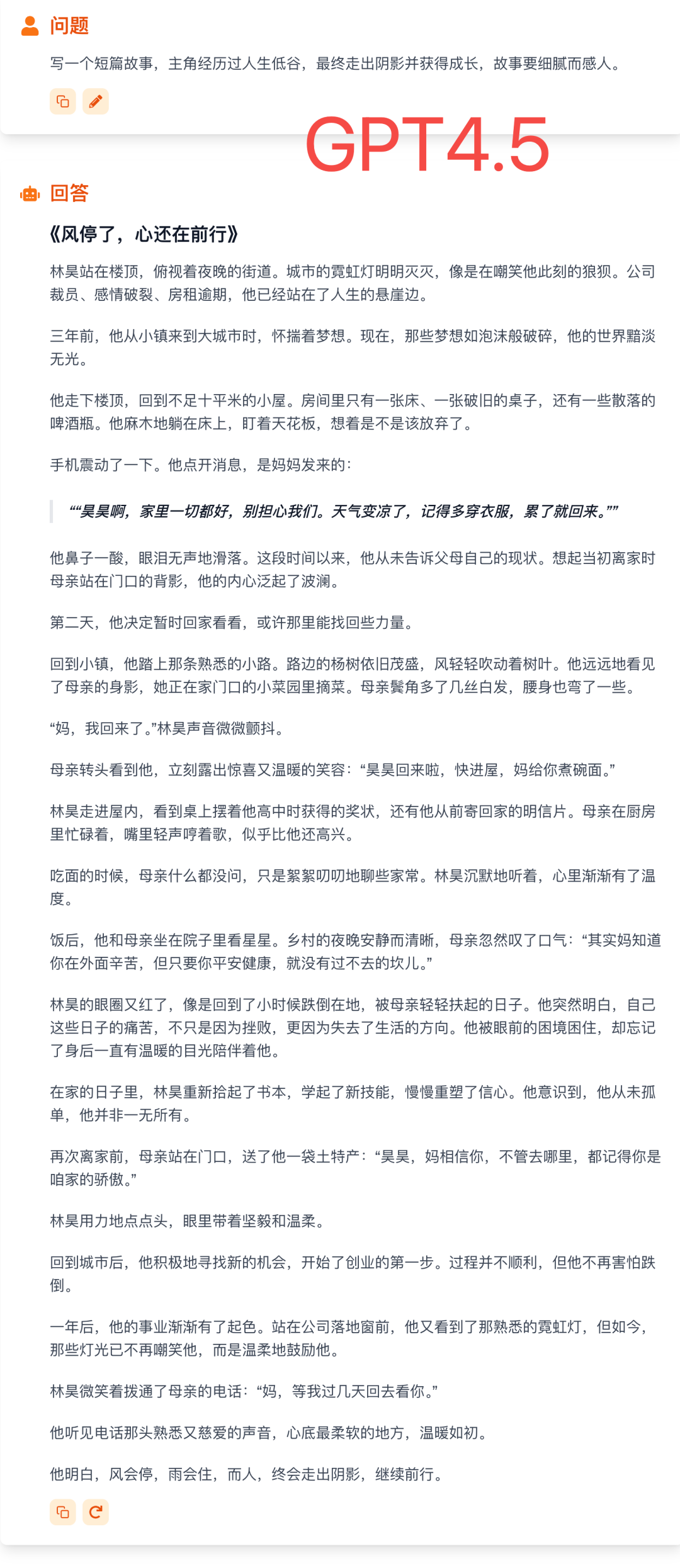 而 GPT-4.5 写出来的内容,只需要稍作润色就能直接使用。