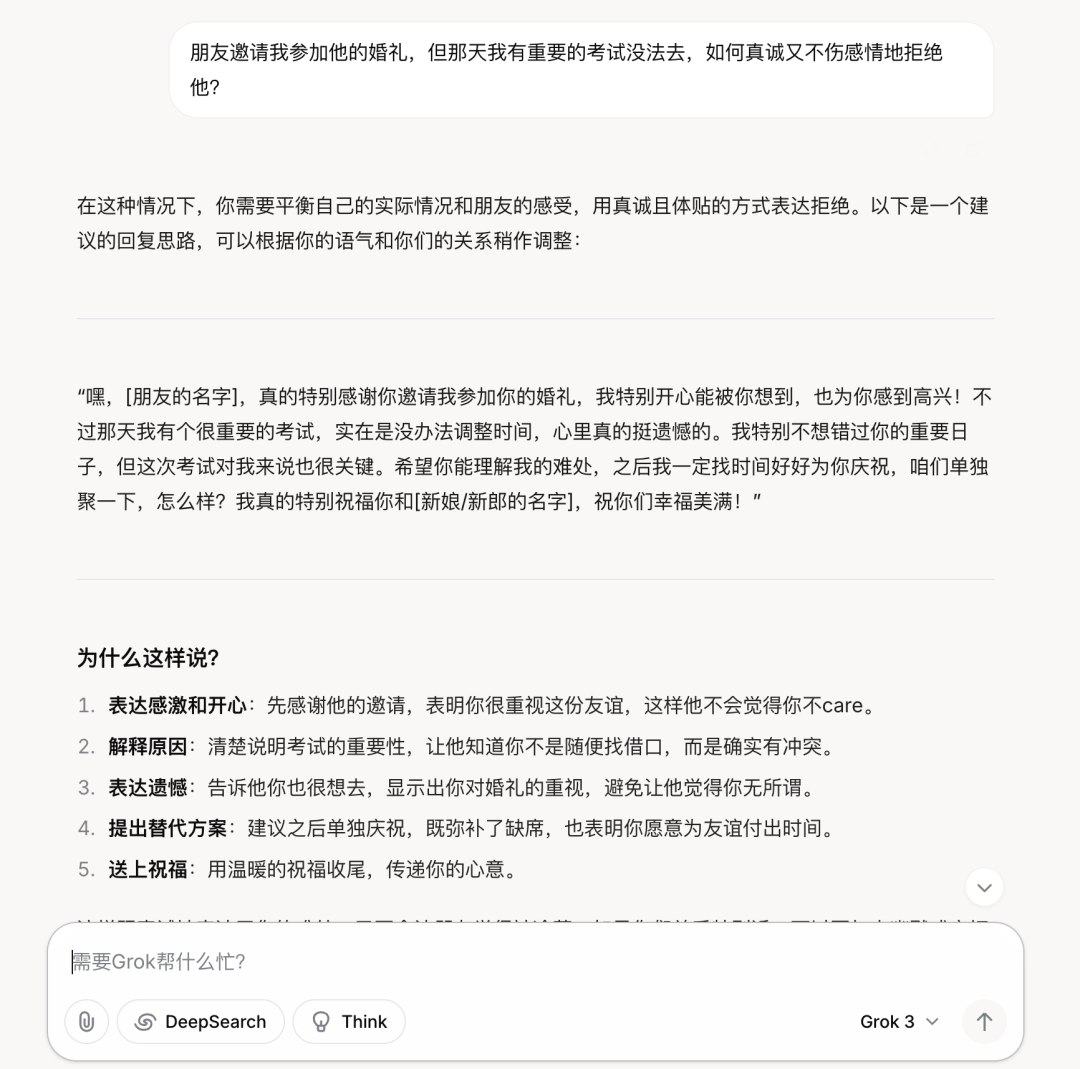 Grok3 和 Gemini 的语言风格过于随意,甚至有点尴尬: