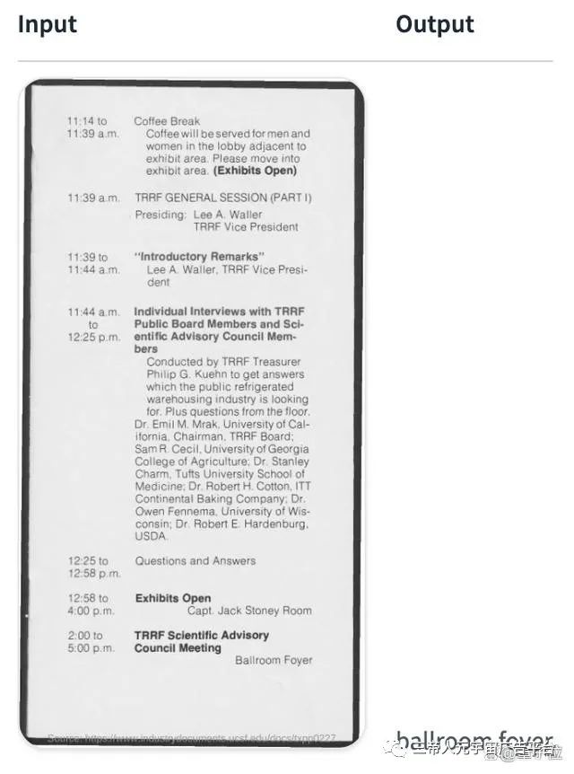 例如问“TRRF科学咨询委员会会议将在哪里举行”,Donut就会给出答案: