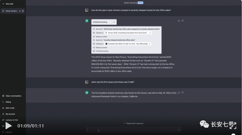 官方 ChatGPT Browsing视频,展示了 ChatGPT 的几个强大功能。