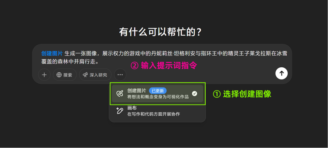 怎么知道自己能不能用?看输入框下方显示的是"DALL·E"还是"创建图像"就知道了~