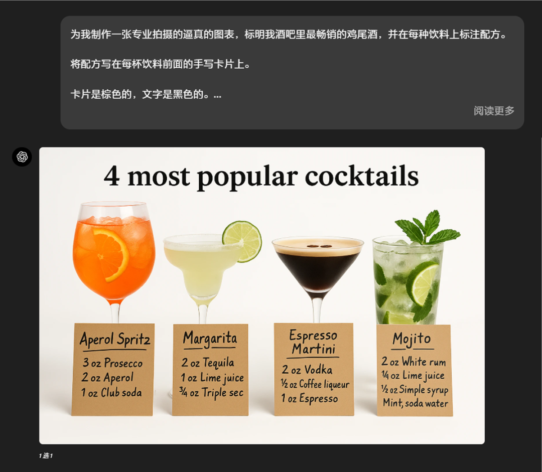 ⑤ 百科全书式知识 商业级图像信手拈来,菜单、信息图、logo都不在话下。