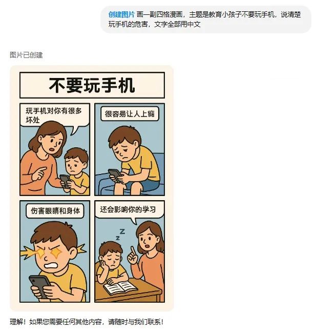 不是单张漫画,而是一组风格统一、人物一致的连环画!更神奇的是,中文指令的构图能力居然很强: