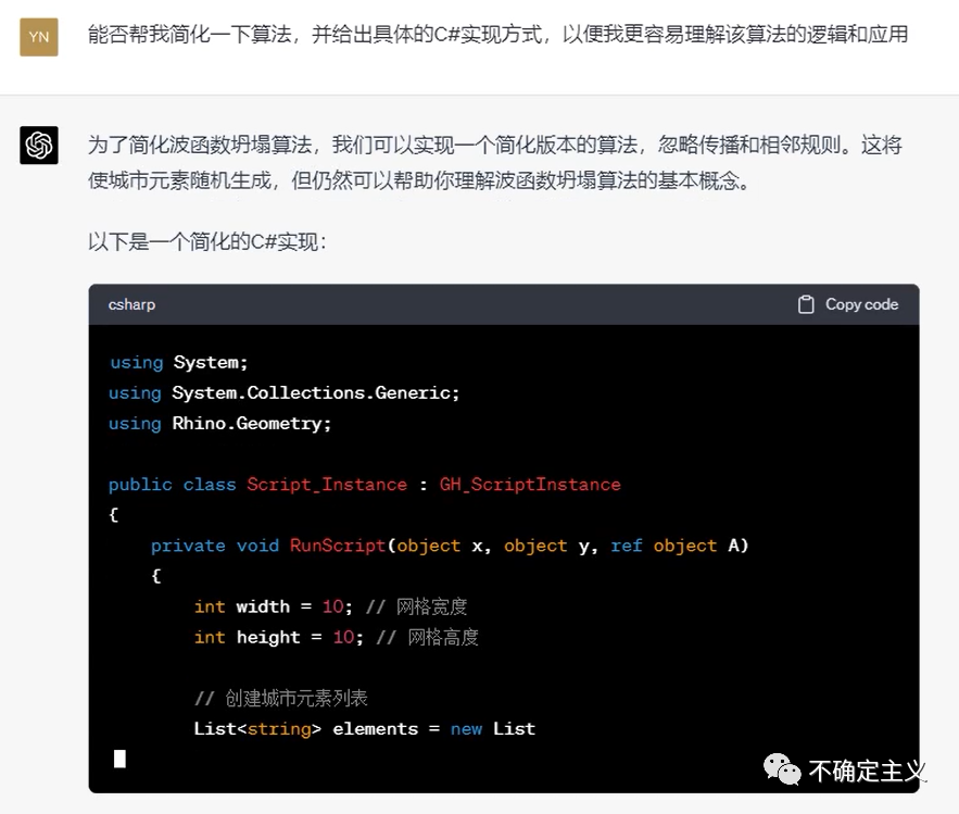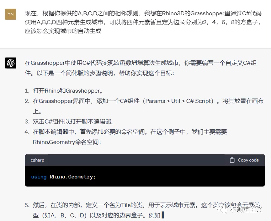 五一的时候,让ChatGPT4帮我在Grasshopper写了个城市生成插件,采用了波函数坍缩算法,效果不得不说真的很顶,从只知道基本概念,到实现算法效果,只花了半个下午的时间。