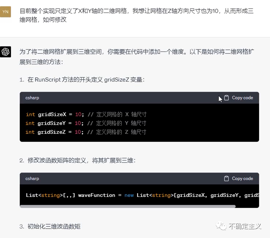 当然,这个过程因为需要对前面所有代码添加Z轴维度,所以ChatGPT开始有点丢三落四,经过我的提醒,和自己的一点点调试,还是很快速地实现了三个维度上的波函数坍塌布局。最终效果如下图:![]()