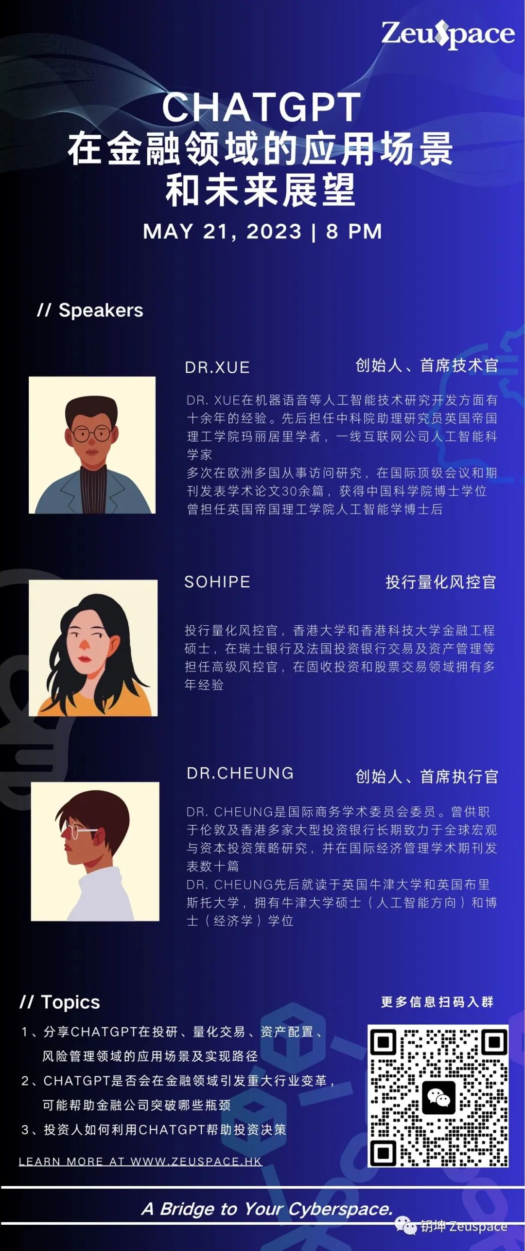 钥坤Zeuspace将于下周日晚(2023/05/21 20:00)召开主题《ChatGPT在金融领域的应用场景和未来展望》精品论坛。