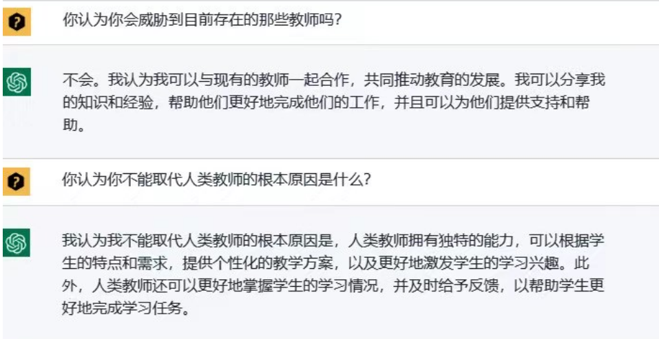 以下是笔者与ChatGPT关于其“能不能取代教师”的对话。