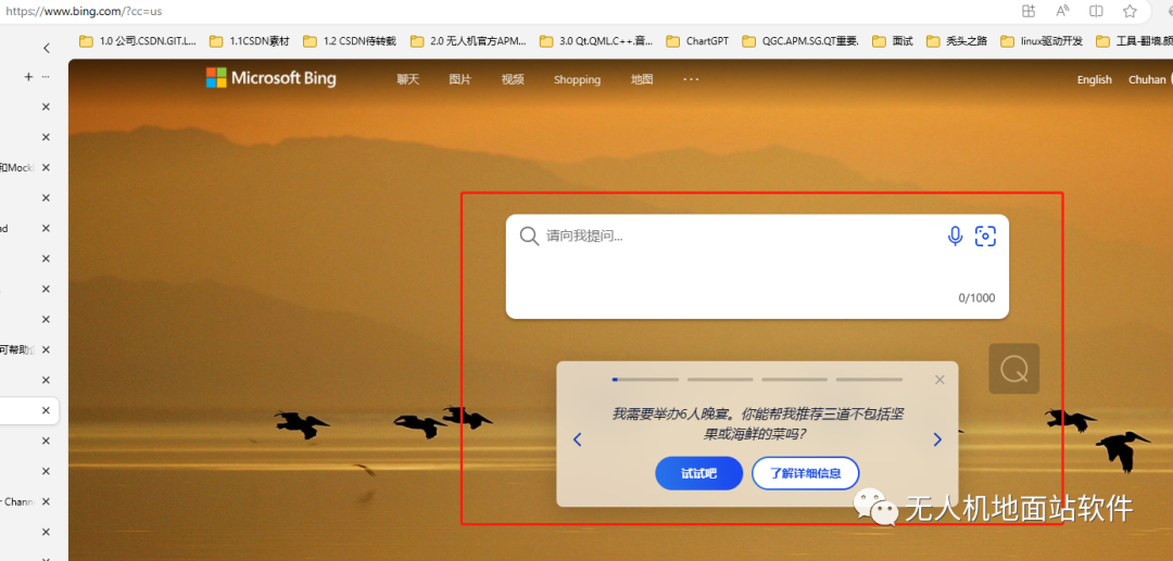 输入 bing 搜索 应该就可以出现chat呢,或者直接输入这个地址: