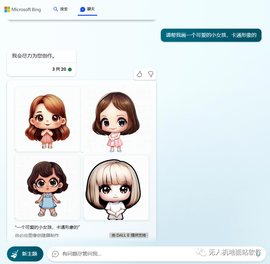 Bing聊天有三个模式,其中“更有创造力”的模式下是可以画画的(文字生成图片),但这个功能只开放给登录用户使用。