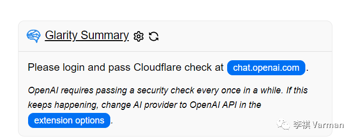 由于 Glarity 并没有提供 OpenAI 账号,所以在安装成功后,在浏览器搜索内容,会提示登录到 OpenAI。