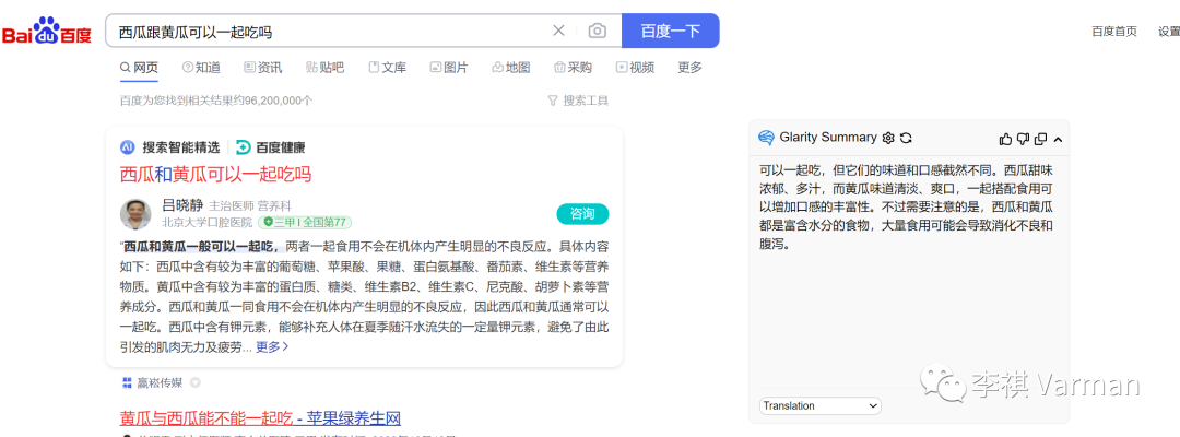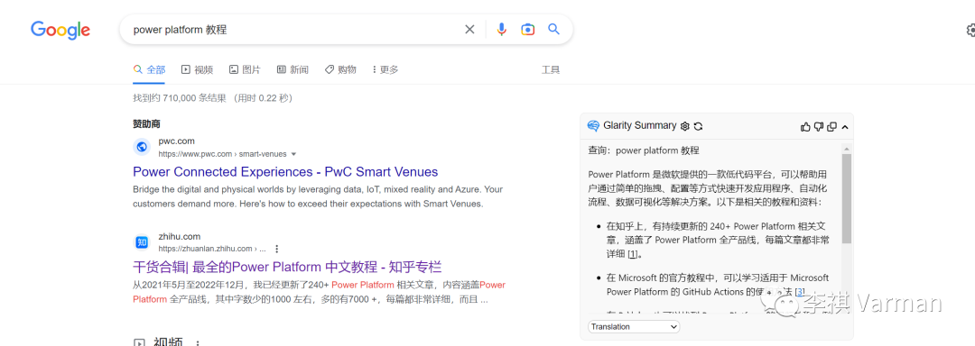 当我们在 Google 进行搜索时,可以直接在右侧展示出由 GPT 生成的结果。