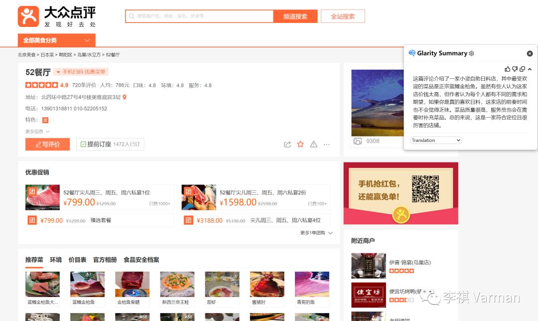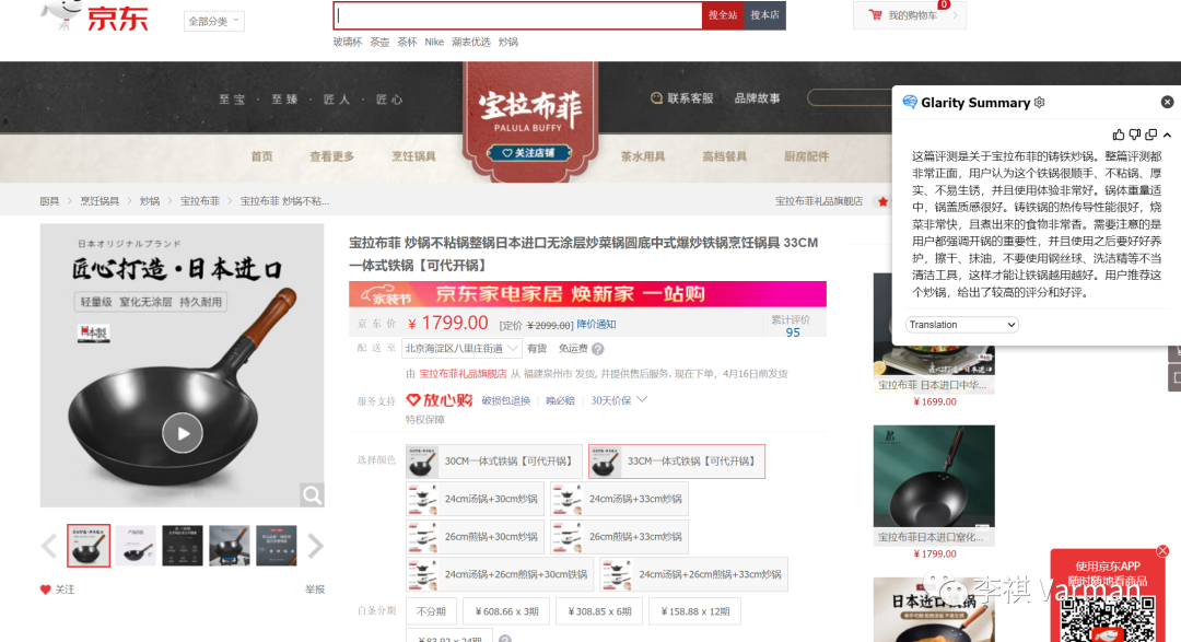 最后一个功能是评论摘要,Glarity专门针对国内的一些带有评论信息的网页进行了定制。