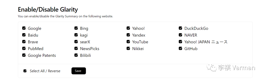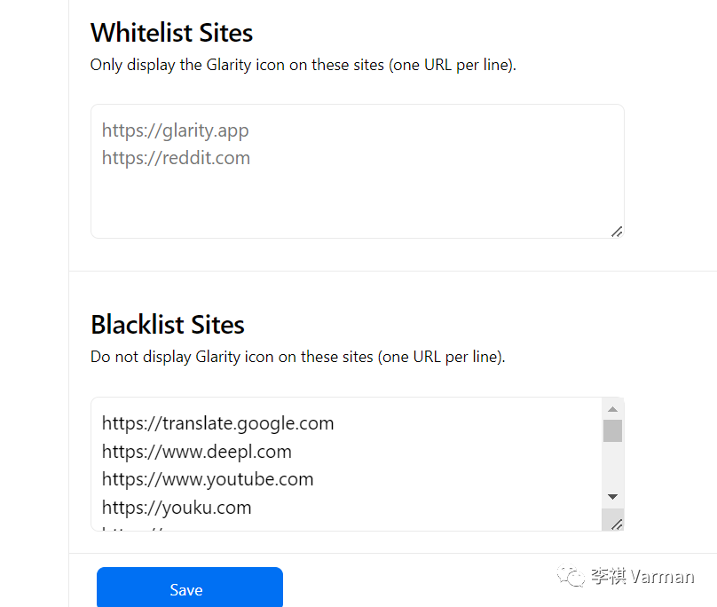 如果不想为某个站点启用 Glarity 可以设置禁用站点。