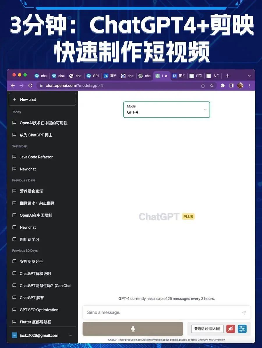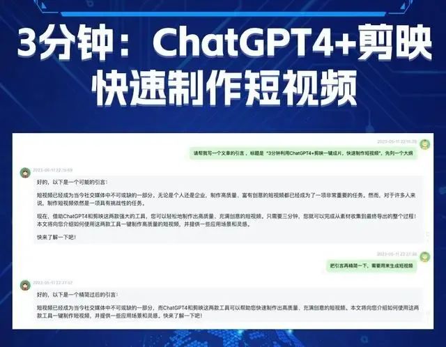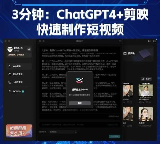 请帮我写一个人短视频的文案,标题是“3分钟利用ChatGPT4+剪映一键成片,快速制作短视频”