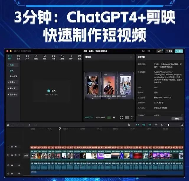 最后: 利用ChatGPT4+和剪映的强大功能,您可以在短短几分钟内快速制作出富有个性、创意十足的短视频。无论是为自己的社交媒体账号打造内容,还是为品牌营销打造有趣的宣传片,这种快速、高效的制作方式都能为您节省时间和精力,让您在短时间内实现出色的创意表现。