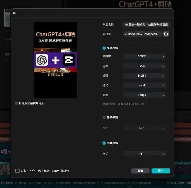 第三步: 生成视频后,您可以通过ChatGPT4+的智能推荐功能快速修改视频封面图片让它更加吸引人。同时,您还可以对字幕进行微调,使其更加符合视频内容。除此之外,您还可以根据需要优化视频细节,比如添加音乐、特效等,让整个短视频更具创意和趣味性。