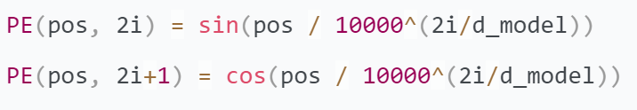 其中,pos 是位置(对于序列中的第一个词,pos 是0,对于第二个词,pos 是1,依此类推),i 是维度(对于词嵌入向量中的第一个元素,i 是0,对于第二个元素,i 是1,依此类推),d_model 是词嵌入向量的维度(在原始的Transformer模型中,d_model 是512)。