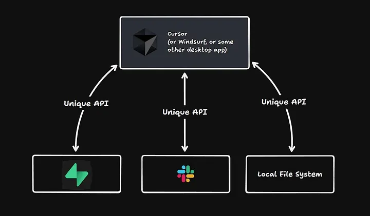 过去我经常会想:要是能在对话里浏览 GitHub 项目、从 IDE 里直连 Supabase、或直接读 Slack 团队的待办,效率有多高? 但在 MCP 出现之前,这类事都很难落地——你得为每个外部系统写一套专用 API 适配,还要处理授权、数据格式与安全。