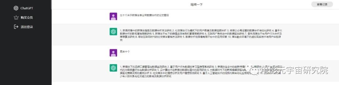 首先,打开chatGPT界面,然后进行提问“出十个关于新媒体专业带数据分析的论文题目”,看chatGPT会怎样回答。