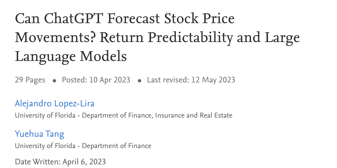 研究团队用ChatGPT生成的情绪的分来指导股票操作。