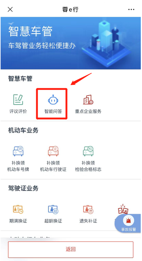 点击“蓉e行”→“智慧车管”→智能问答→对话框输入你想要了解的业务就可以啦!
