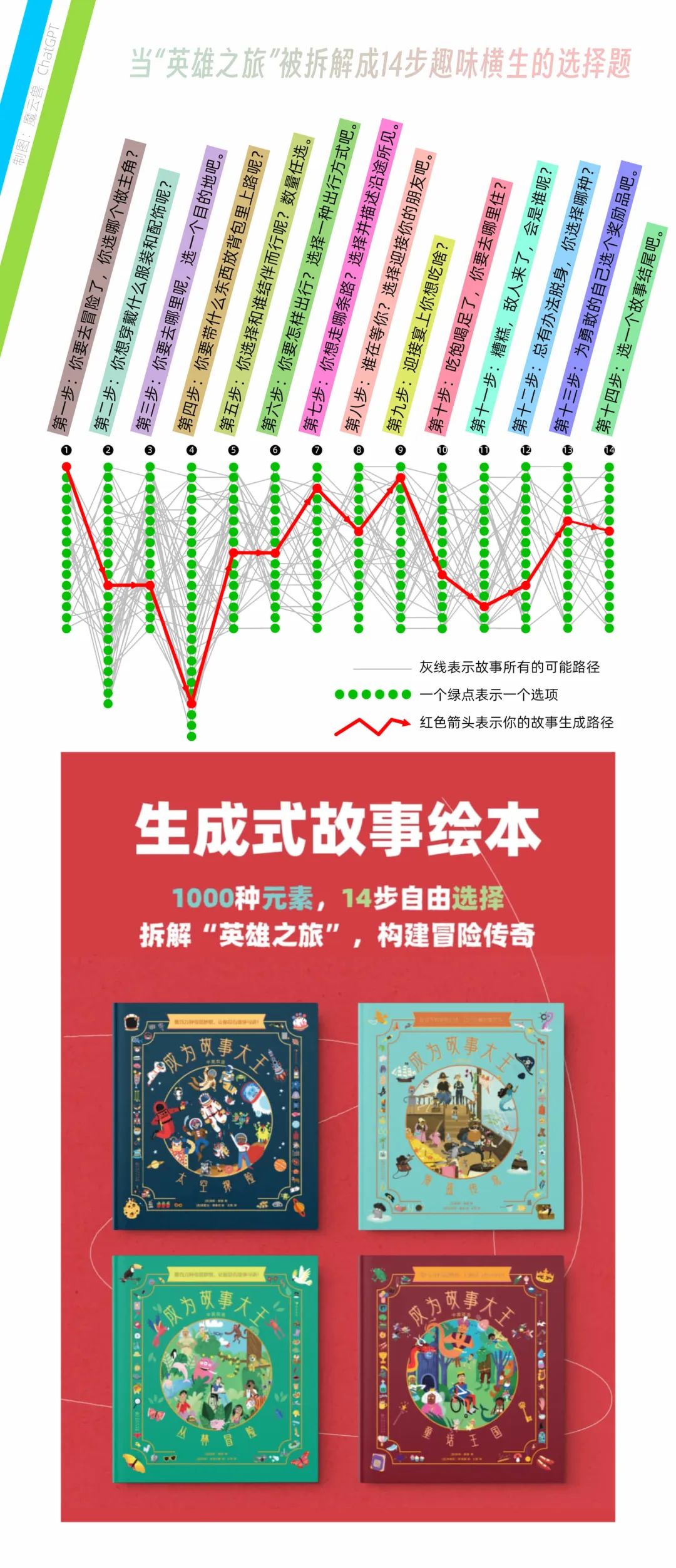 简单来讲,这本书的本质就是把教小孩讲故事这件事,变成了14步选择题,读者要选择主角、武器、装饰,甚至敌人和战胜他们的方式等等。选完以后,一个故事就自动产生了。