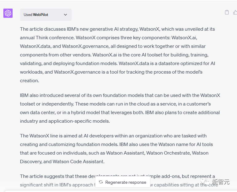 比如在下面这个示例中,ChatGPT 首先会使用 WebPilot 总结文章。