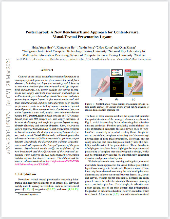 PosterLayout:内容感知视觉文本演示布局的新基准和方法
