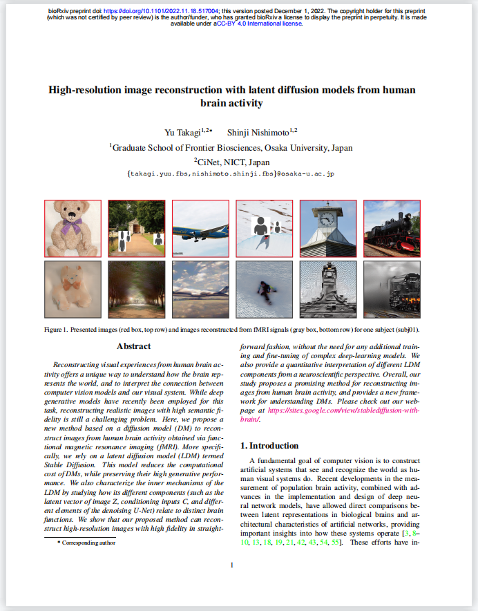 使用人脑活动的潜在扩散模型进行高分辨率图像重建