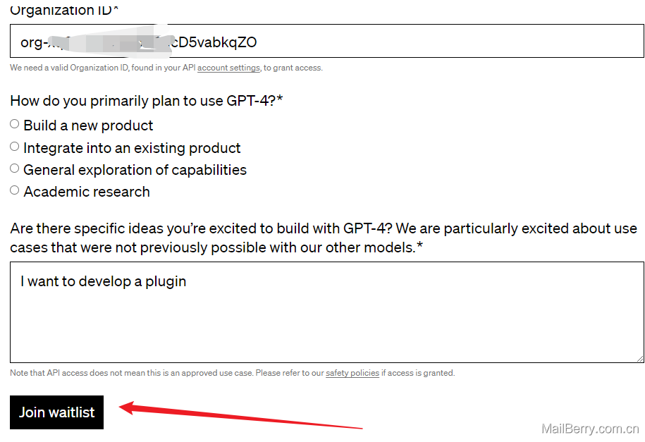 如果您对OpenAI的API服务感兴趣,可以通过申请普通ChatGPT账号来进行体验。然而,由于GPT-4 API目前尚未开放,因此您需要加入waitlist并等待其开放。