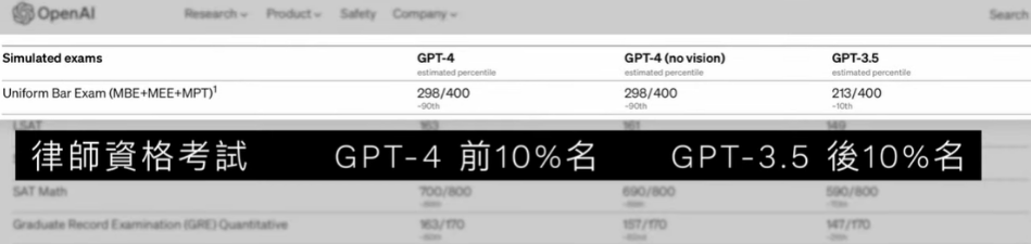 律师资格考试评估测试中,GPT-4可以达到前10%的排名,而GPT-3.5则只能排在后10%。