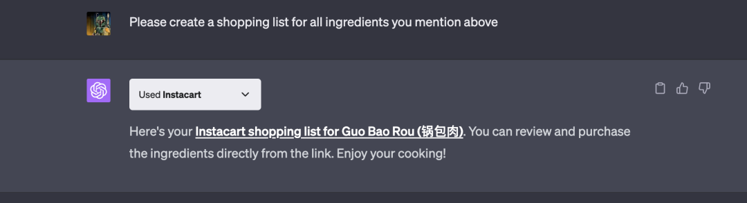 我惊喜地发现,Instacart(国外美团外卖)能帮助将这些食材列入购物清单,直接让用户从它那下单。