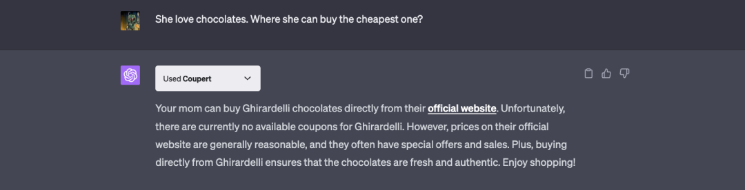 ChatGPT 甚至接入“比价工具”。这点对于外来游客可太友好了。我火速用它告诉我妈如何买特产。