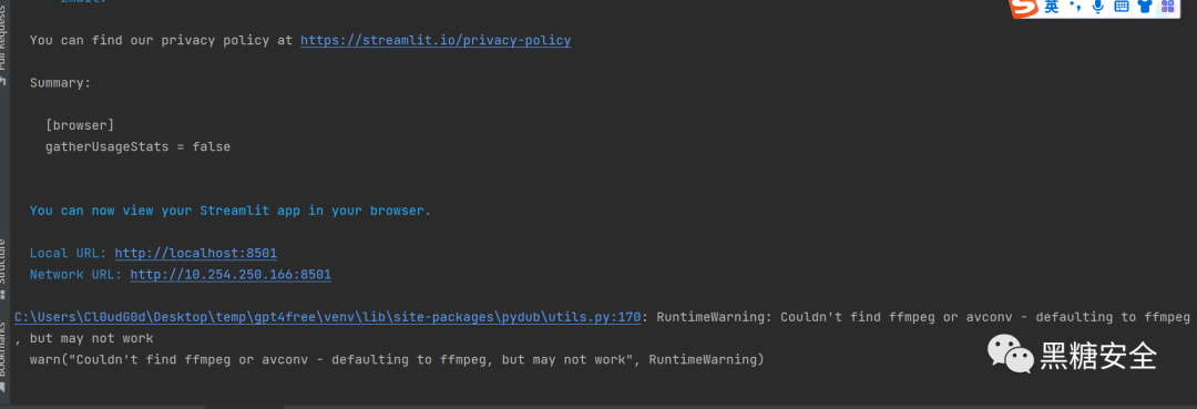 git clone https://github.com/xtekky/gpt4free.git虚拟环境安装包,我本地的python环境是3.8