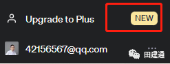 信用卡搞定后,终于来到最后一步开通ChatGPT Plus,登录ChatGPT账号后,左下角有个升级Plus的入口