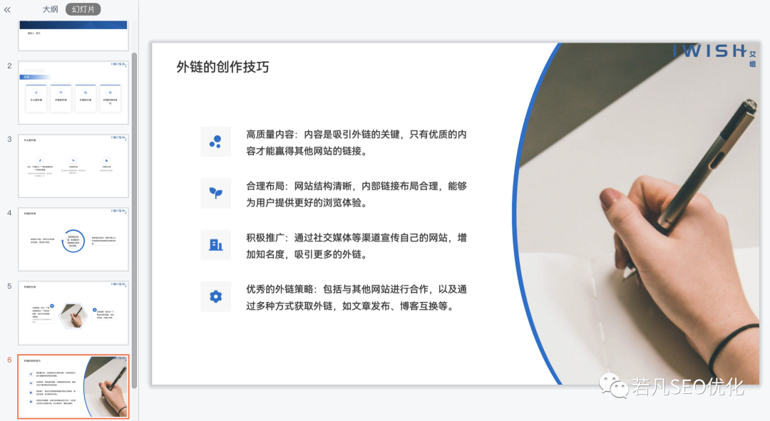 只需要你输入大纲内容格式,他就能自动帮你排版。我用两分钟的时间让他帮我生成了一套PP。当然,这两个工具也有他的弊端, 模板太少,并且要用他的内容格式才能生成。