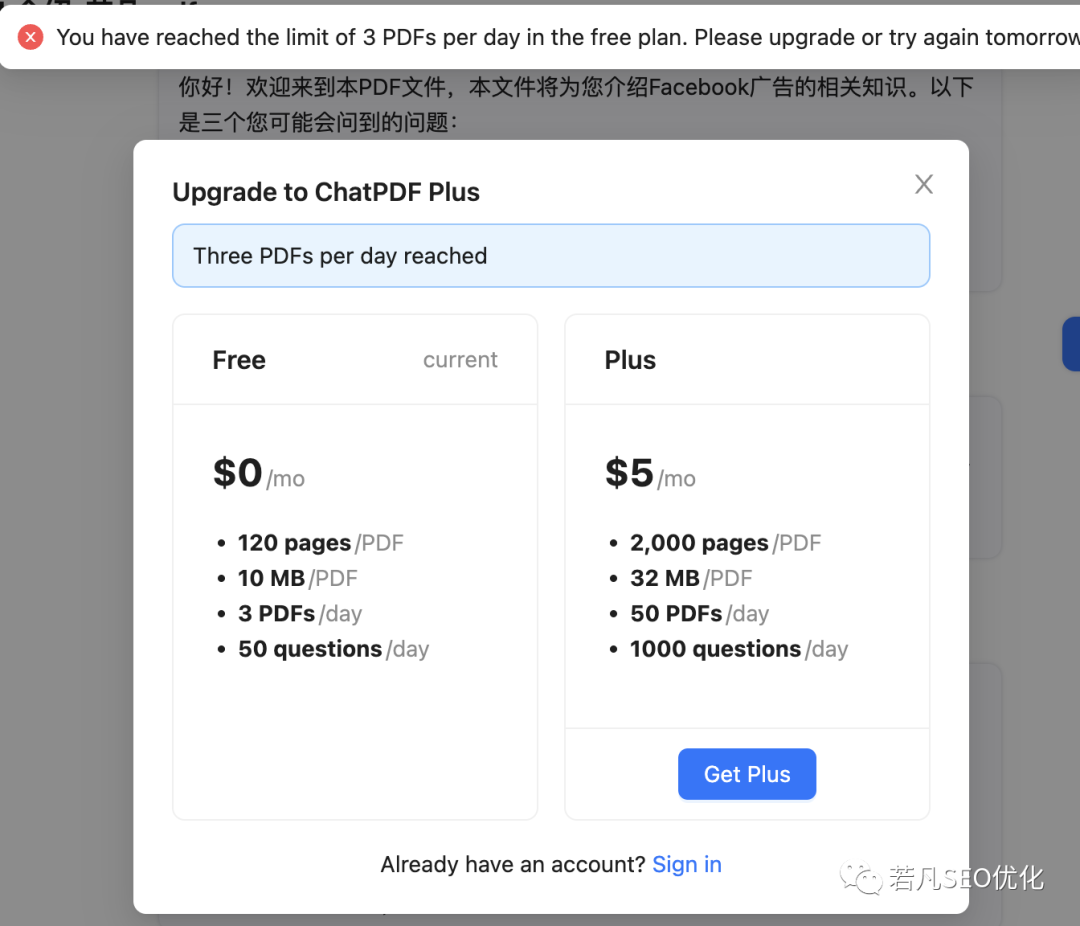 你有任何的PDF文档,只要放进去,它都能够识别里面的内容,并且你可以直接问它所有的内容重要,它都可以帮你呈现。就相当于书里有很多知识,它能够快速识别你想要的内容,并且帮你总结。这总结能力,简直了。可惜白嫖的东西还是有限,当我想把自己总结的PDF文件和ZAC老师的实战密码放进去的时候,他居然显示要收费了。