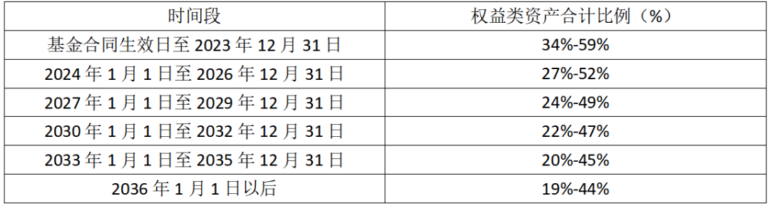 此外,ChatGPT还提到要关注“投资策略”,从这个维度看,养老目标日期基金的投资策略,具有比较好的“普适性”。以万家养老2035三年持有期FOF为例,一方面,采取大类资产配置策略,多元配置提升组合防御力;另一方面,采取“下滑曲线”模型进行配置,随着目标日期时间的临近,权益类资产投资比例逐渐下降,较好地匹配了人一生的风险偏好的变化。