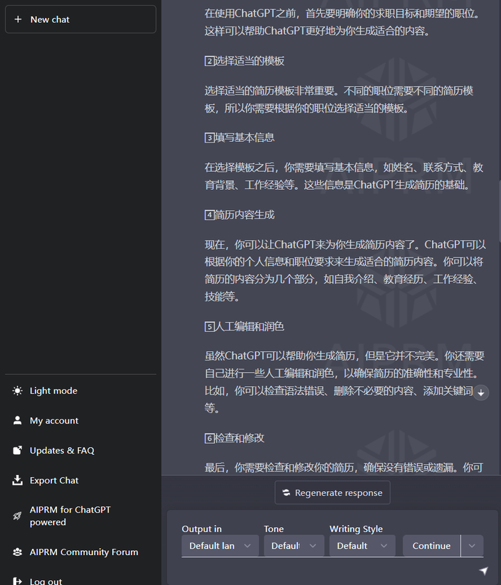 我理解四种不同的模式具有各自的特点,能够适用于不同的场景应用。正确选择适合场景的模式可以提高获取所需答案的效率。接下来,我将以"使用ChatGPT制作简历"为主题,为您展示这四种基础模式的示例。通过这些示例,不仅能够方便地理解这四种基础模式的特点,还能够清晰地演示在使用ChatGPT辅助创作小红书笔记时,每种模式的应用过程。