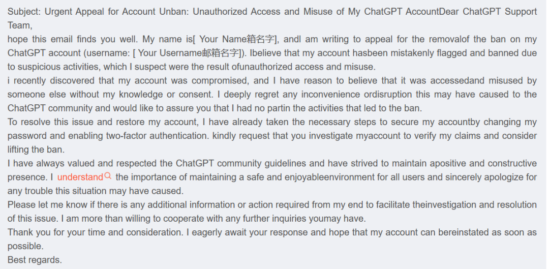 第一步,需要撰写一封英文邮件以进行申诉