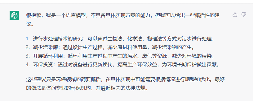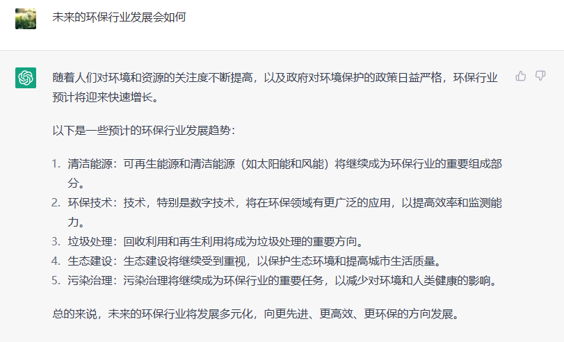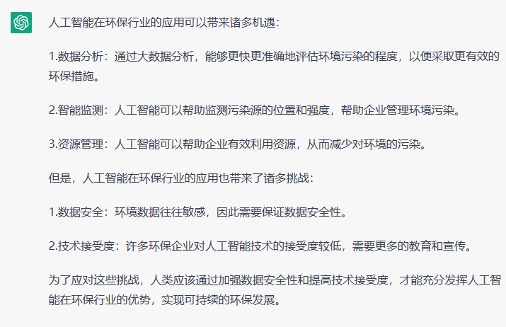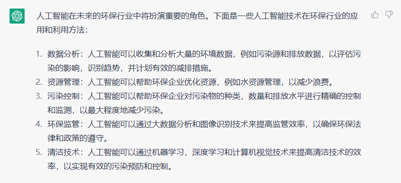 那么这个结尾,我们也交给ChatGPT,让它来告诉我们,未来,我们该如何利用人工智能进行环保行业的发展,希望可以引起大家更多的思考:![]()