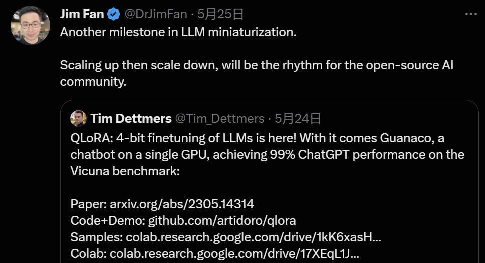 最近,来自华盛顿大学的 QLoRA 成为了 AI 领域的热门,很多人把它形容为里程碑级、改变规则的技术。
