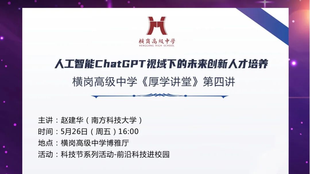2023年5月26日下午,在学校博雅厅内,来自南方科技大学的赵建华教授就上述问题侃侃而谈,让在座的师生们豁然开朗。这是本学期横岗高中“厚学讲堂”第四期,近三百名师生一起聆听了这次精彩的报告。