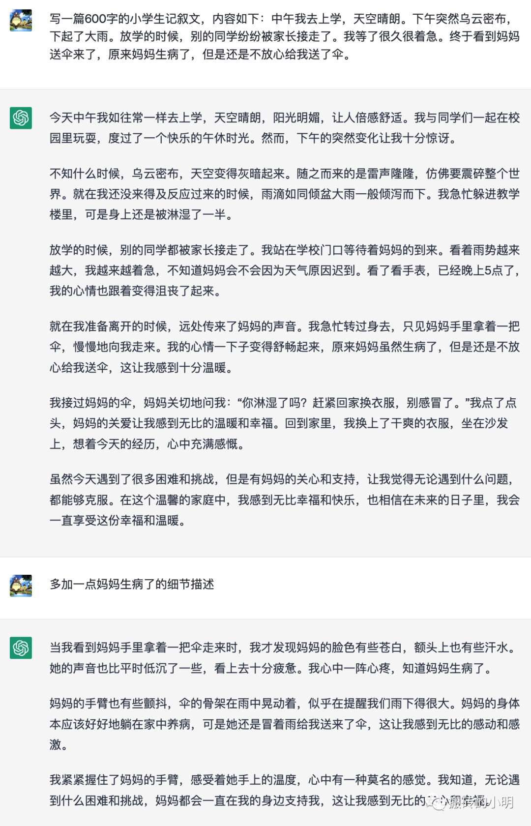 ChatGPT很擅长写故事,只需要给出故事梗概,还能指定字数,并且可以反复提要求让ChatGPT修改直到满意。这对语言功底一般的人而言太有用了,ChatGPT的文采比我实在好太多了。