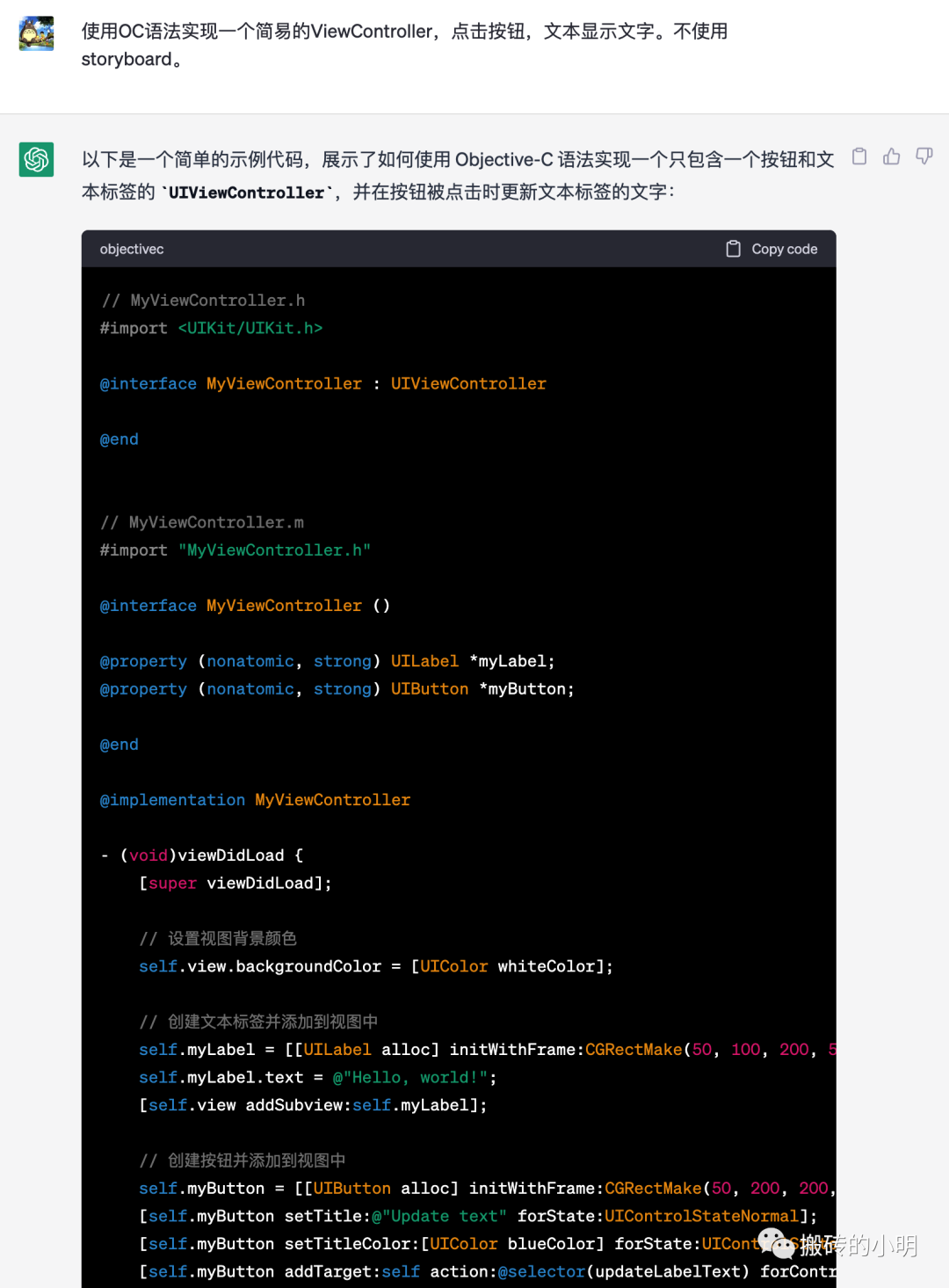 举个例子,网上的文章太多了,Demo太复杂了,我让ChatGPT给我写了一个极简Demo,让我很快就能对iOS上UIViewController的用法有个基本概念。