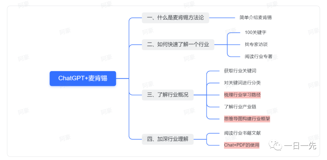 作为一家世界级的商业咨询公司,麦肯锡的主要职责就是与各个行业的公司和领导者合作,提供策略建议,并针对他们面临的行业问题提出有效的解决方案。麦肯锡的团队能够迅速掌握新领域并找出核心问题的关键,就在于他们都遵循一套经过实践检验的方法论——《麦肯锡方法》。这一方法论包括了各种解决商业问题的技巧,如"MECE原则"、"以事实为基础的原则"和"80/20原则"等。今天我们无需深究这些技巧,只需要从中找出如何快速理解一个行业的关键要点,并利用AI的力量来快速实践这些方法论。